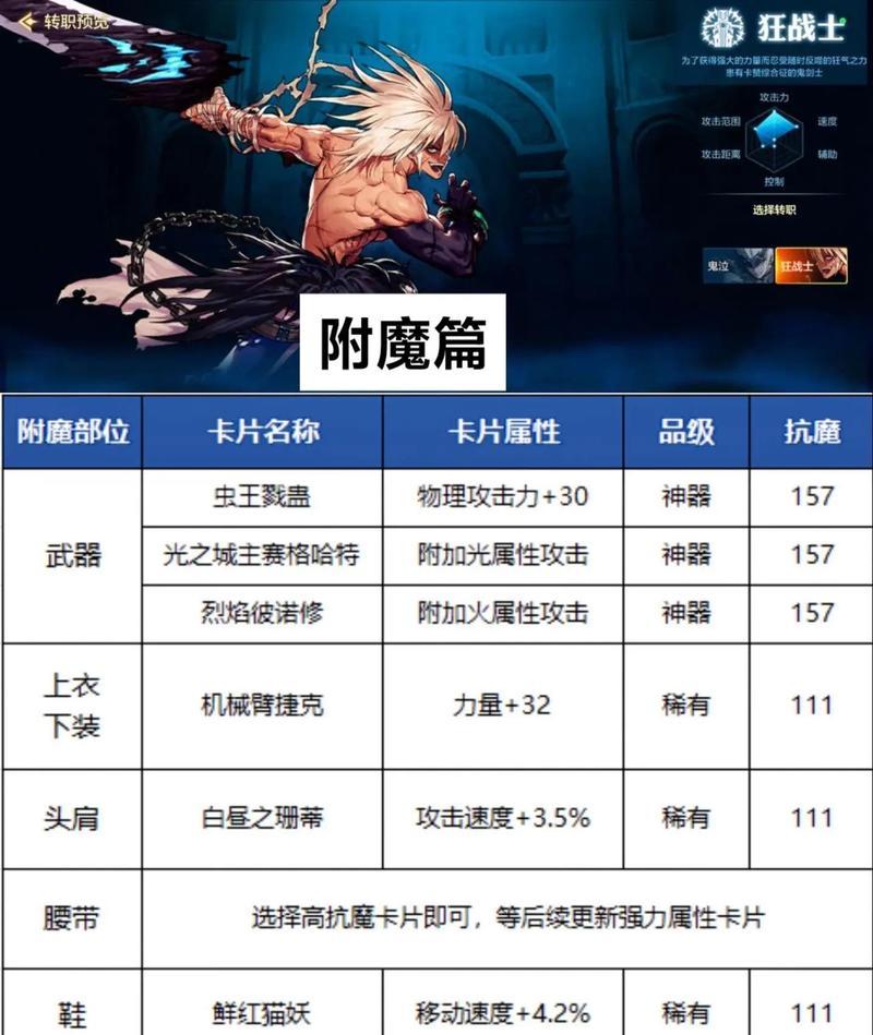 作为经典的多人在线角色扮演游戏,DNF(地下城与勇士)一直吸引着无数玩家的关注。其中附魔师职业因其强大的输出能力和独特的技能特点而备受喜爱。然而,在游戏中迅速提升附魔师的等级却是一项艰巨的任务。本文将为广大DNF玩家分享一些快速升级的方法和技巧,助你在游戏中迅速成长。