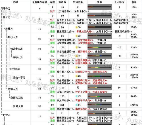 1.基础属性评估:通过对太刀的攻击力、斩味和属性进行评估,选择适合自己的基础装备。