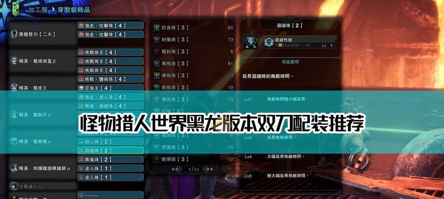 10.高级技能推荐:风压无效、无伤、挑战者等:除了基本技能外,本段将推荐一些适合双刀的高级技能,如风压无效、无伤、挑战者等,来进一步提升狩猎能力。