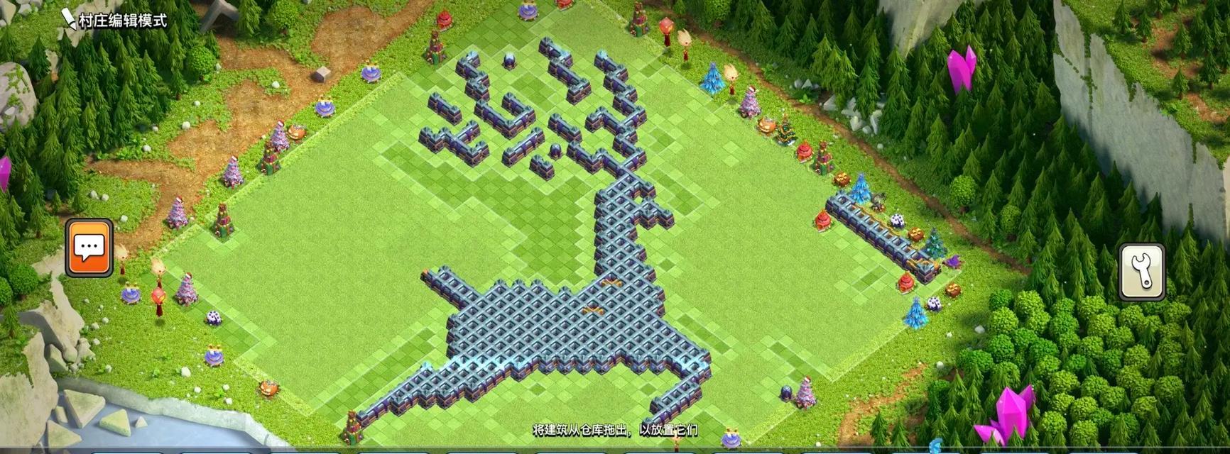 包围核心建筑:确保城墙能够完整包围大本营、金矿、圣水收集器等关键建筑,防止敌军直接攻击到这些高价值目标。