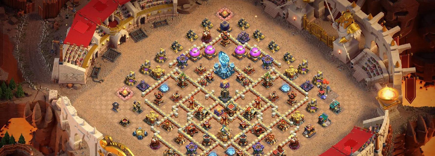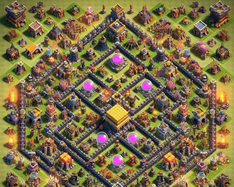 资源建筑集中:将金矿、水晶矿、圣水井等资源建筑集中放置在地图中心区域,用以获得核心防御的保护。