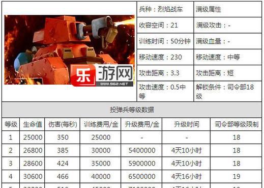 作为海岛奇兵中的一款重要战争机器,烈焰战车的属性对于玩家在游戏中的战略部署起到至关重要的作用。本文将详细介绍烈焰战车的各项属性,并给出相应的分析和建议,帮助玩家打造最强大的火力军团。
