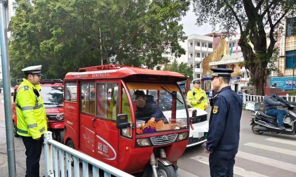 辽宁东港:近日,东港市公安局交通管理大队联合市交通局,紧扣春节车流量、人流量剧增的特点,深入孤山镇开展三轮车非法营运专项整治行动。